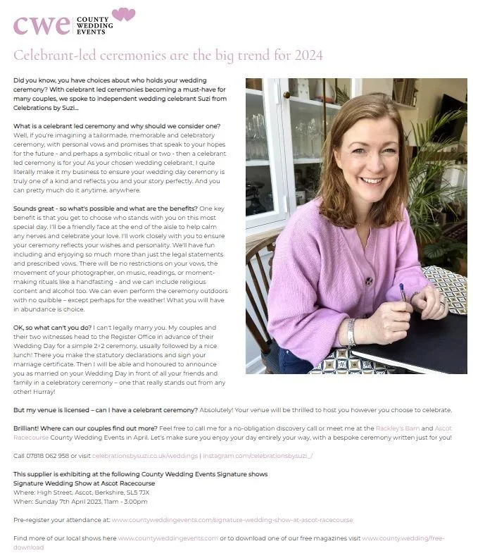 With so many fabulous wedding trends, it would be remis of me not to shout about one of the biggest in recent years - celebrant led wedding ceremonies!